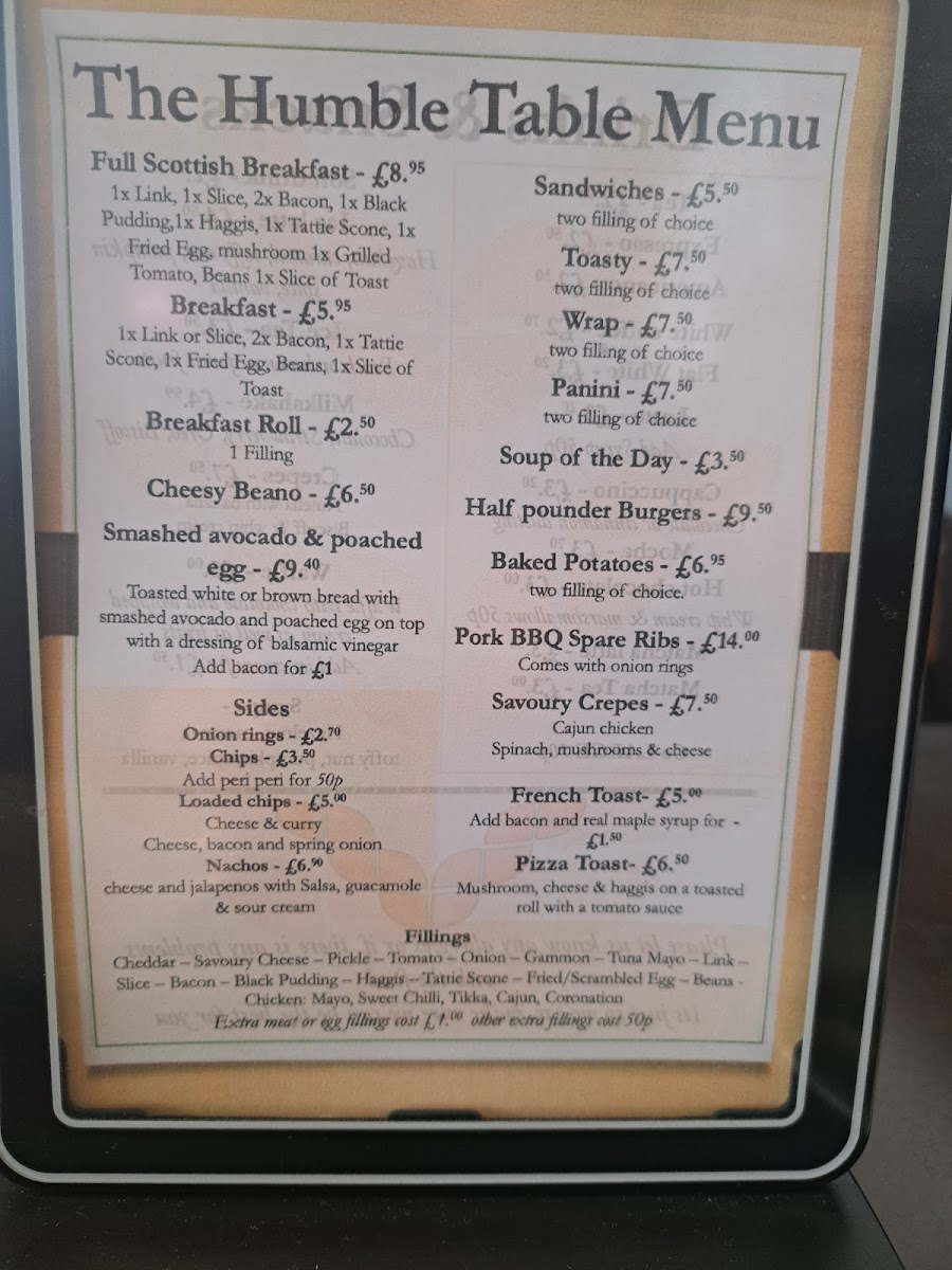The Humble Table Menu